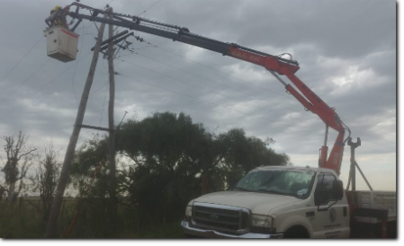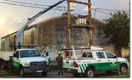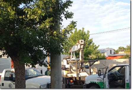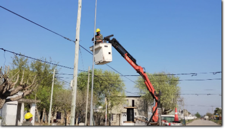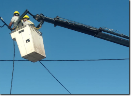 Trabajos de mejora en la red eléctrica, realizando tareas sobre la línea de media tensión en las calles Ing. Firpo y en la calle Urquiza , donde se esta reemplazando el cable desnudo por cable protegido.